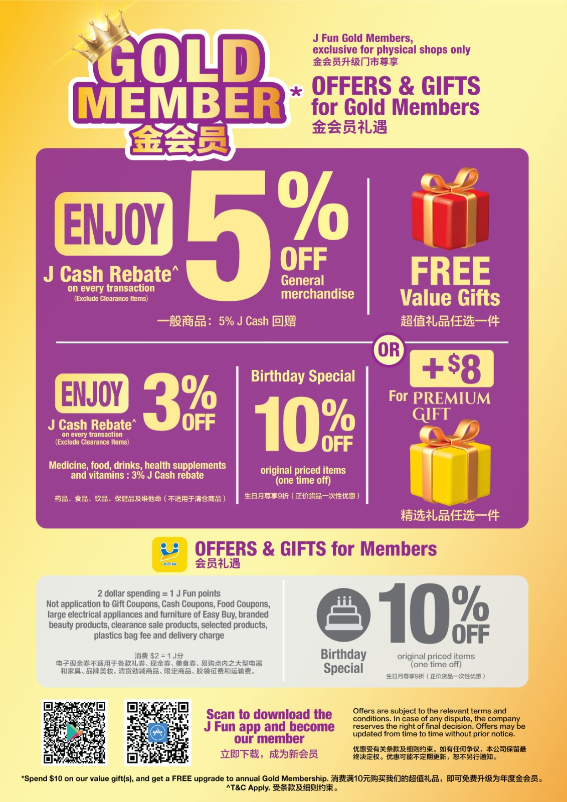 J Fun Gold membership program is an upgraded membership level of J Fun membership program. To participate in the J Fun Gold membership program, you must first become a J Fun member and have agreed to its membership program terms and conditions. The terms & conditions of J Fun Gold are as follows: